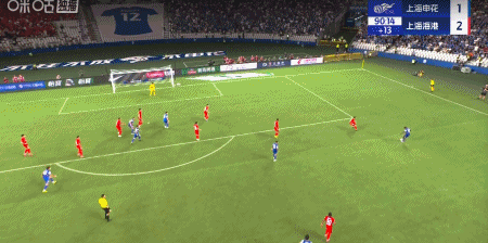 第54分钟,申花开出角球在海港禁区内制造混乱,陈晋一门前补射破门!申花扳回一分!